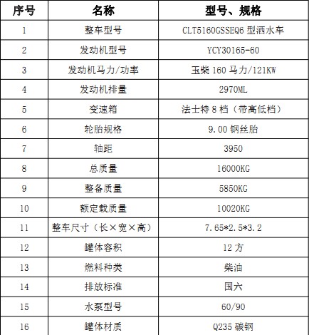 1、整車型號: CLT5160GSSEQ6型灑水車